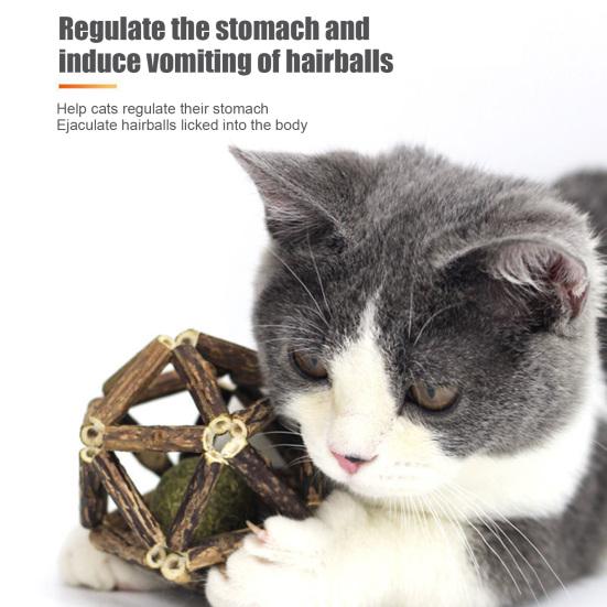 Prezentând jucăria minge cu iarba mâței, o jucărie încântătoare pentru prietenul tău felin. Fabricată cu grijă, această jucărie conține bile interne umplute cu iarbă pisicii uscată premium, asigurând o experiență sigură și plăcută pentru animalul dvs. de companie.. Cadrul robust, format din bețe conectate strâns, asigură durabilitate și stabilitate în timpul jocului.. Fabricate din materiale naturale, bețișoarele emit un miros atrăgător pentru pisici, care captează interesul pisicii tale.