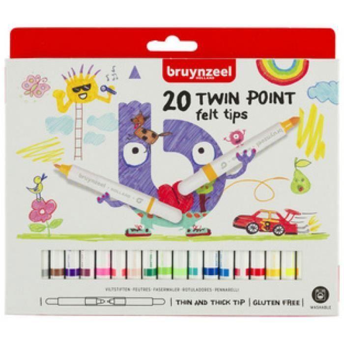 Bruynzeel Feutre double pointe Kids TWIN POINT, 'tui de 20 0,000000 Noir