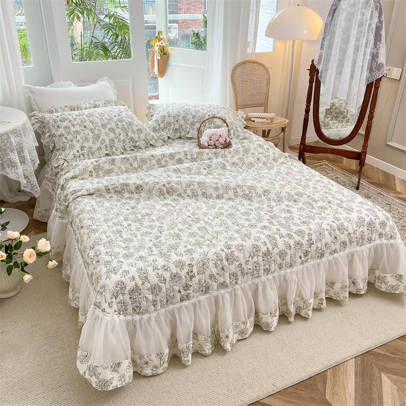 French bed cover three-piece quilted quilted cotton padded lace bed cover non-slip cotton bed cover tatami blanket