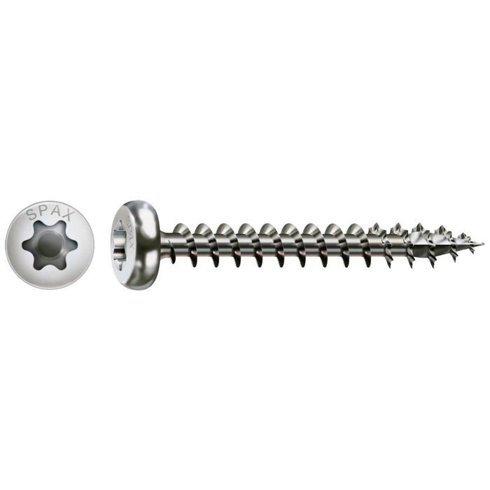 SPAX Șurub universal 1.4567-0207000350203, cu cap plat bombat, T-Star plus, 4CUT, din oțel inoxidabil A2, -