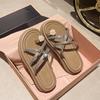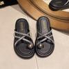 Set of toe thick-soled slippers for women to wear summer new flower rhinestones cross belt Roman one-pedal cool slippers