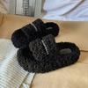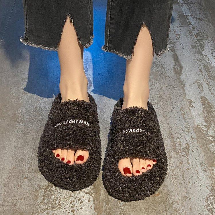 Internet celebrities thick-soled teddy curled wool shoes women's shoes wear new autumn and winter plush one-word cotton slippers