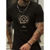 Men's Casual Short Sleeve T-Shirt - Round Neck, Soft Polyester Fabric, Geometric Black Line Design, Summer Style Tee for Casual Attire