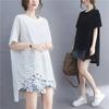 New Summer Women's T-shirt Short-sleeve Cotton Mid-Length Pocket Loose Slim Shirt Split Round Neck Cartoon Letter Printed Tops