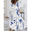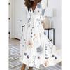 Rochie de damă stil boem, largă, cu gât în V, mâneci lungi, imprimată, mărime mare, îmbrăcăminte de modă de toamnă
