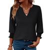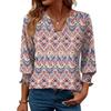 Women's Casual Floral Print Short Sleeve T-Shirt V-Neck Polyester Fiber Summer Fashion Top Seven-Eighth Length Shirt