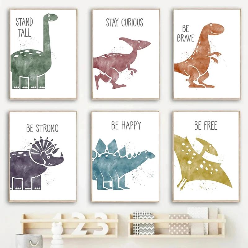 Postere Dinozaur Drăguț Desen Animat Animal Pepinieră Poster Nordic Artă de Perete Pictură pe Pânză Decor Acasă Camera Copiilor Decor Pepinieră
