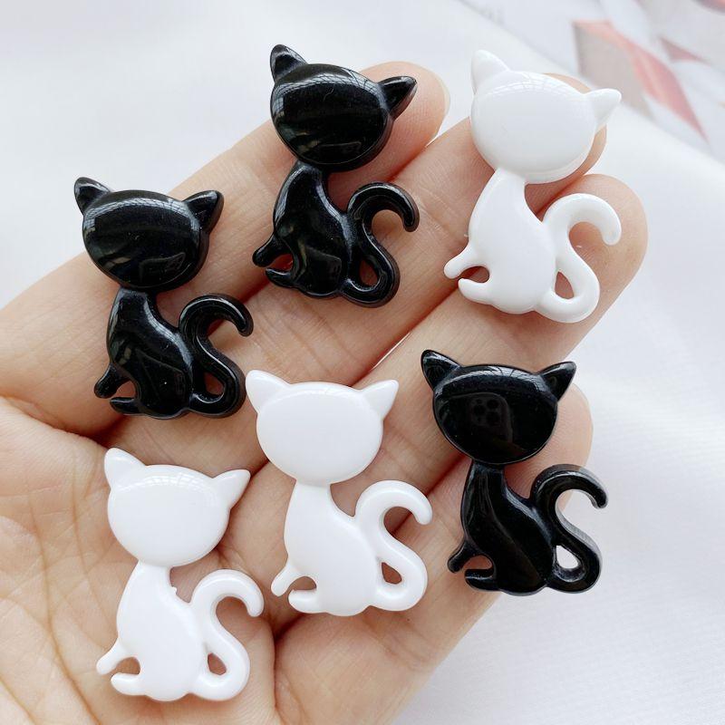 10 Pcs New Cute Cartoon Black Cat, White Cat Series Flat Back Resin Scrapbooking DIY Jewelry Hairpin Craft Decoration Accessorie
