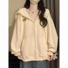 Cardigan cu glugă și șnur în stil coreean pentru femei, cu mâneci lungi, casual, larg, versatil, cu fermoar pentru femei