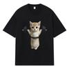 Cute Orange Cat Lifting Print T-shirt Water Wash Vintage High Quality Short Sleeve Casual Men's and Women's Tops T Shirt