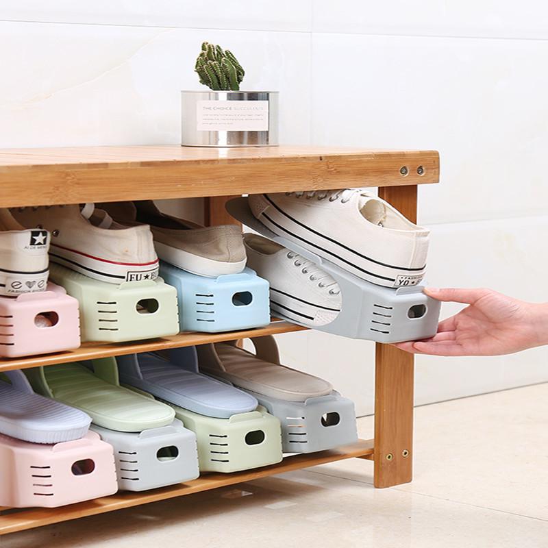 Raft de pantofi compact, reglabil, cu două straturi, pentru depozitare cu economie de spațiu în cămine și locuințe
