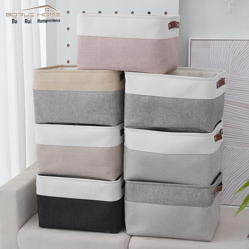 Coș de depozitare modern din in bicolor pentru casă și jucării