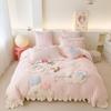 Set de lenjerie de pat de iarnă cu prințese de desene animate, din catifea de lapte - Fleece de coral, Călduros, Patru piese pentru fete