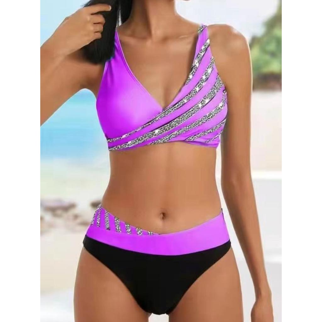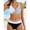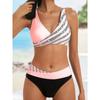Set Bikini la Modă cu Imprimeu în Dungi, Costum de Baie Sexy din Două Piese, Costum de Baie cu Stil Fermecător