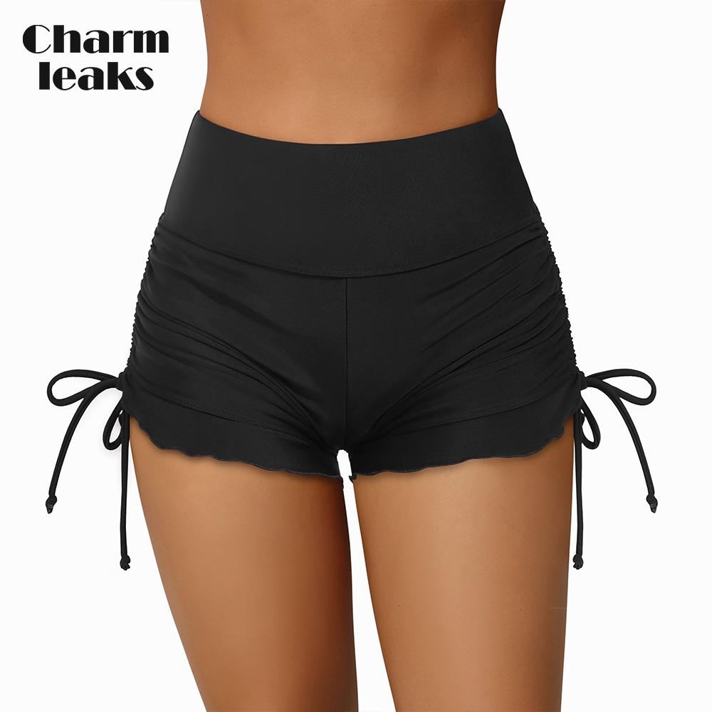 Charmleaks Women Swim Shorts High Waisted Swimsuit Shorts Side Drawstrings Swim Bottom Board Shorts