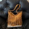 Bag women's autumn Korean version 2025 fashion fringed personalized ins matte large capacity shoulder crossbody bucket bag pu