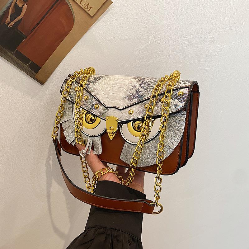 Personalized owl small bag women's 2025 new European and American fashion rivets niche versatile messenger chain small square bag