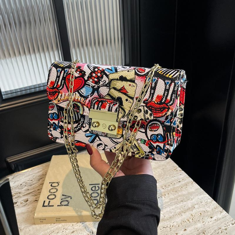 Graffiti small bag summer 2025 new Korean version fashion trend Xiaohongshu women's chain crossbody small square bag pu