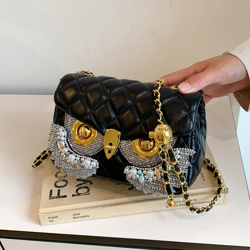 Xiaoxiangfeng diamond bag 2025 new European and American fashion rhinestone fringed shoulder bag women's owl small square bag