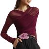 Women's Autumn Solid Color Mesh Sexy Pleated Long Sleeved T-shirt Top for Women Shirt