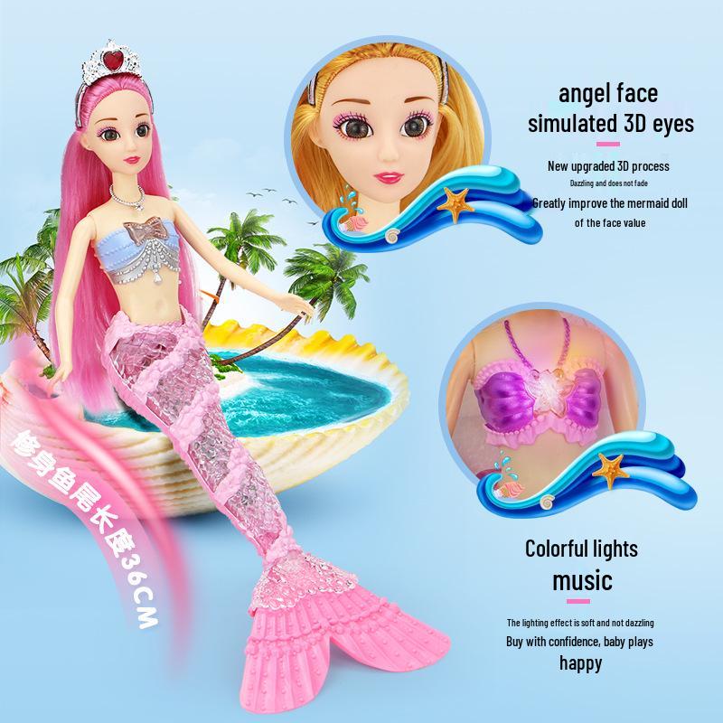 Set Păpușă Prințesă Sirenă Joc de Rol cu Lumini și Muzică – Cadou Perfect de Ziua de Naștere pentru Fete