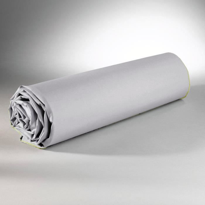 Drap housse - GRIS CLAIR - 140 x 190 cm - 100% coton - Lavable en machine - Uni
