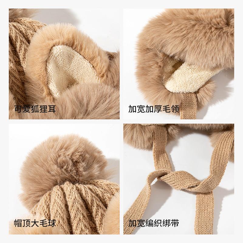 Autumn and winter warm fox ears plush hat female bear cute plush pullover hat wool knitted hat