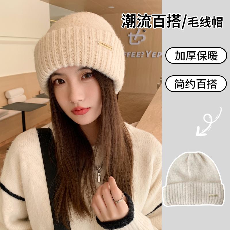 Wool wool hat women's autumn and winter tide metal standard knitted cold hat versatile loose thickened warm stack hat
