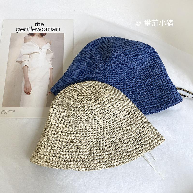 Handmade bucket straw hat women's woven versatile basin hat summer sunshade sunscreen bucket hat foldable sun hat