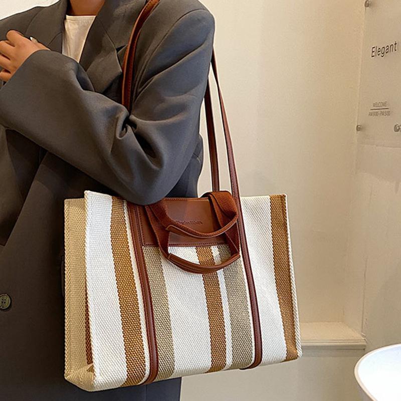 Summer Women's Bags Women's New Canvas Bag Commuter Bag Striped Hand Tote Bag