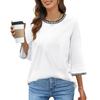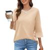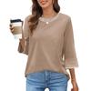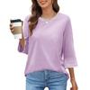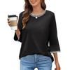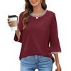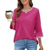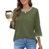 Women's Fashion Loose Round Neck Clashing Colour T-Shirt Seven Sleeve Top