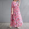 DIMANAF 2025 Summer Women Vintage Plus Size Long Floral Printing Dress Short Sleeve Casual O-Neck Basic Fashion Loose Dress