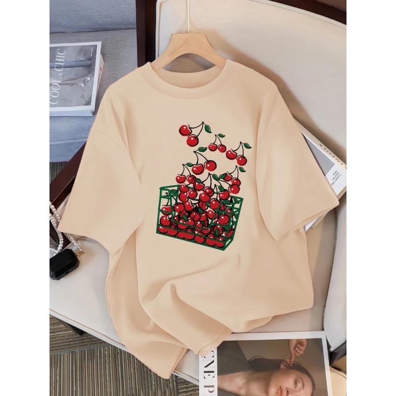 Un Coș de Cireșe Imprimeu Tricou Femei Respirabil Casual Tricouri Vară Mânecă Scurtă Moale Larg Streetwear Cămașă Femei
