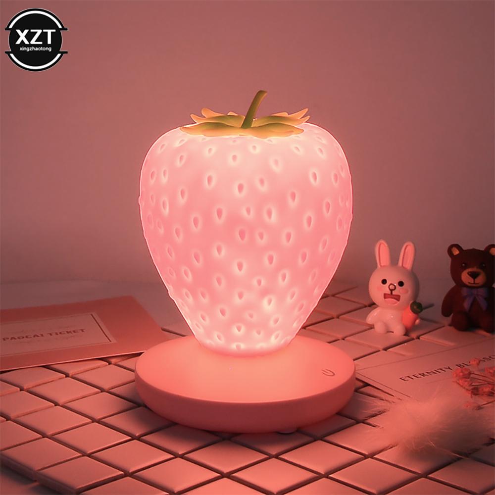 LED Strawberry Lamp for Bedroom Silicon Touch-Sensor USB Rechargeable Dimmable Idyllic Bedside Night Light for House Decoration