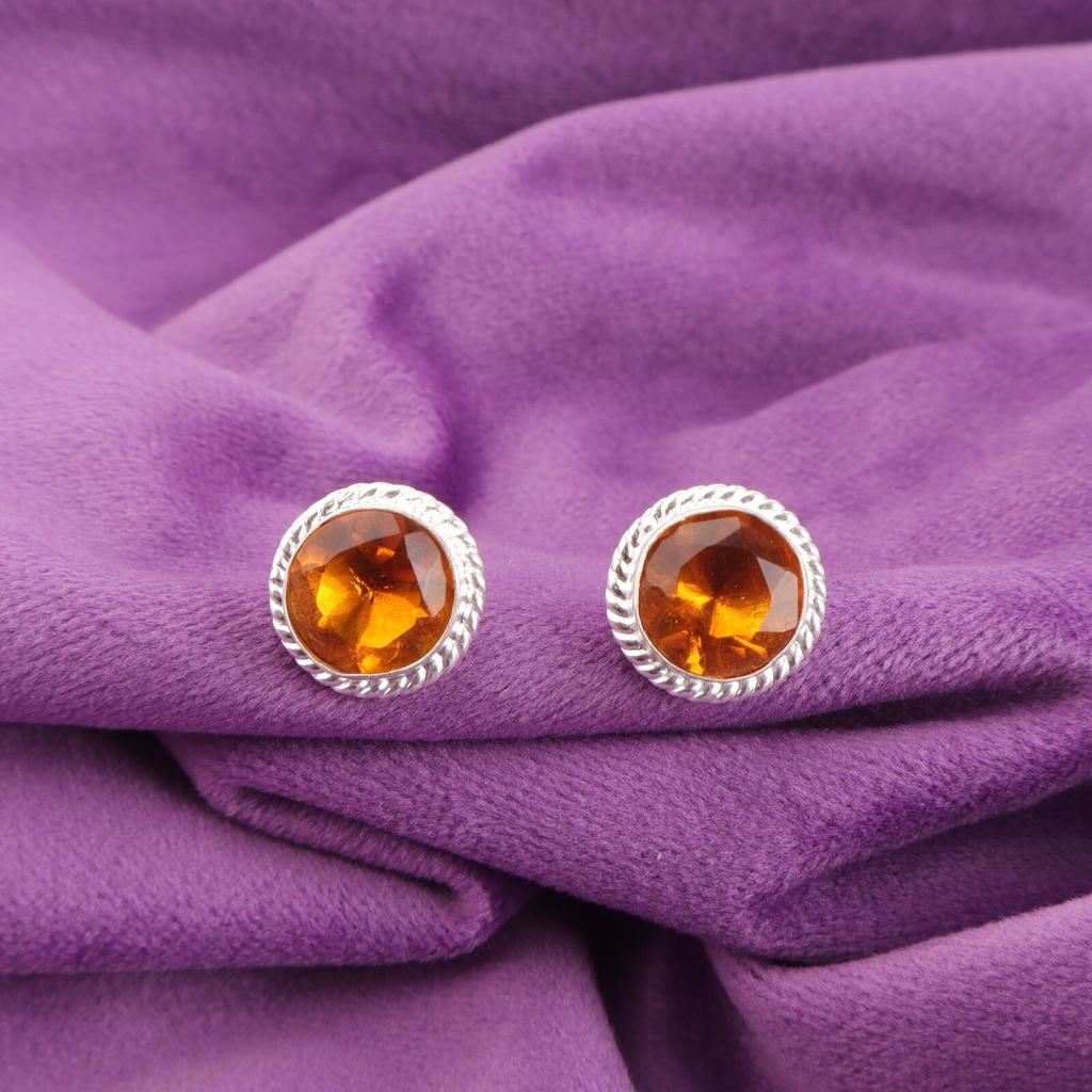 Round Citrine Gemstone 925 Silver Trendy Art Deco New Stud Post Earrings Jewelry EE-147-14