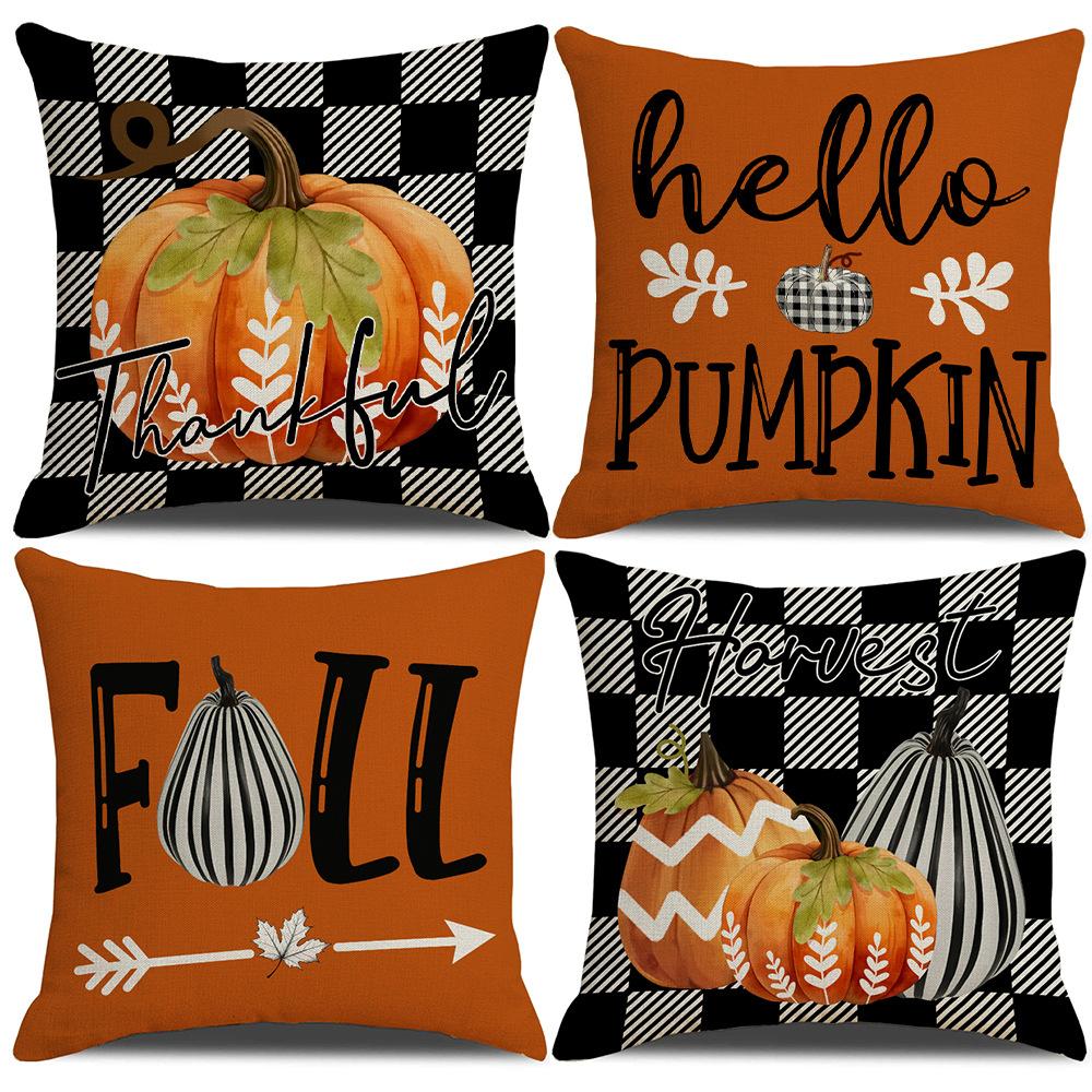 Autumn Plaid Letter Thanksgiving Pillowcase Home Sofa Pillowcase Bedroom Cushion Cover