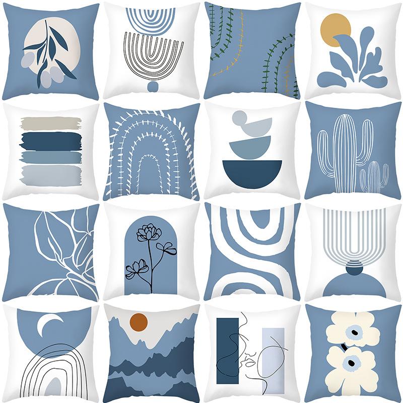 Simple Style Morandi Color Pillowcase Lines Abstract Geometric Printed Cushion Home Sofa Pillowcase