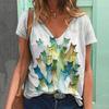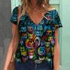 Summer Cat 3D Printed V-neck Short Sleeved Women's T-shirts