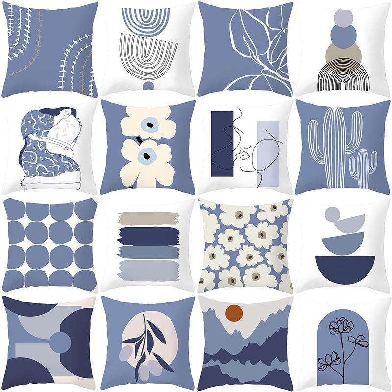 Nordic Blue and Purple Abstract Geometric Pillowcase Peach Leather Velvet Printed Home Fabric Sofa Pillow Cushion Cover