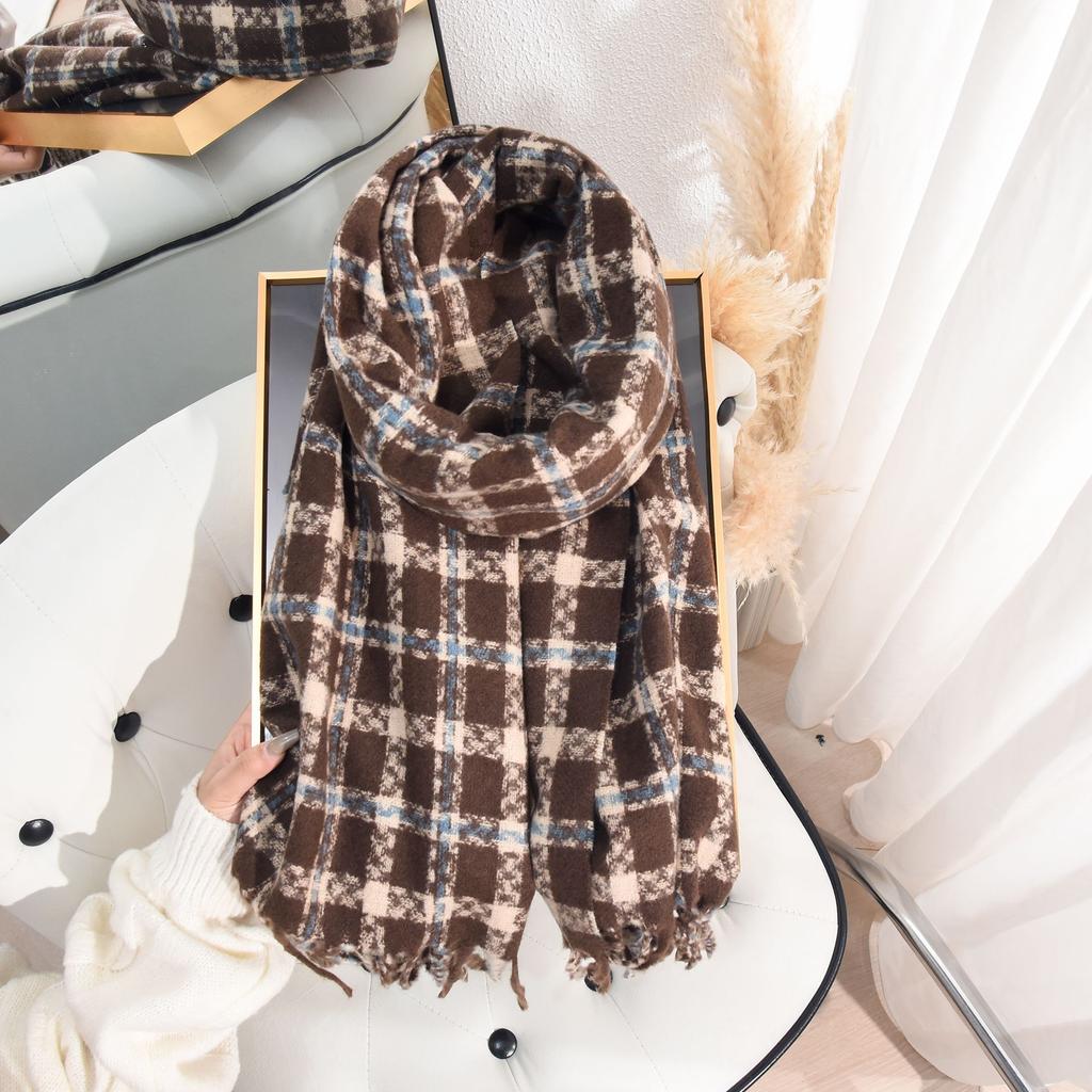 Student couple circle pattern plaid printed scarf women's high-end soft waxy warm scarf
