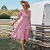 Rochii de damă cu mâneci scurte în dungi, cu ciucuri, lungi, de vară, cu decolteu în V, cu nasturi, pentru femei