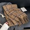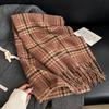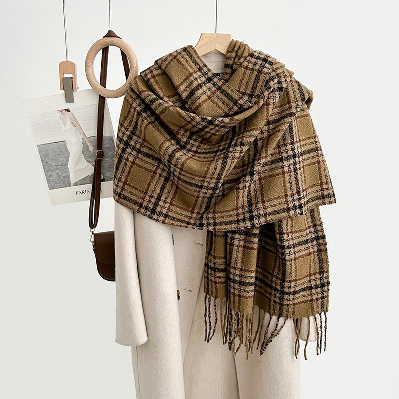 Sens literar retro, modă studențească, purtând un fular cald, călătorii de toamnă și iarnă pentru femei, atmosferă de fotografie de călătorie, șal cu franjuri
