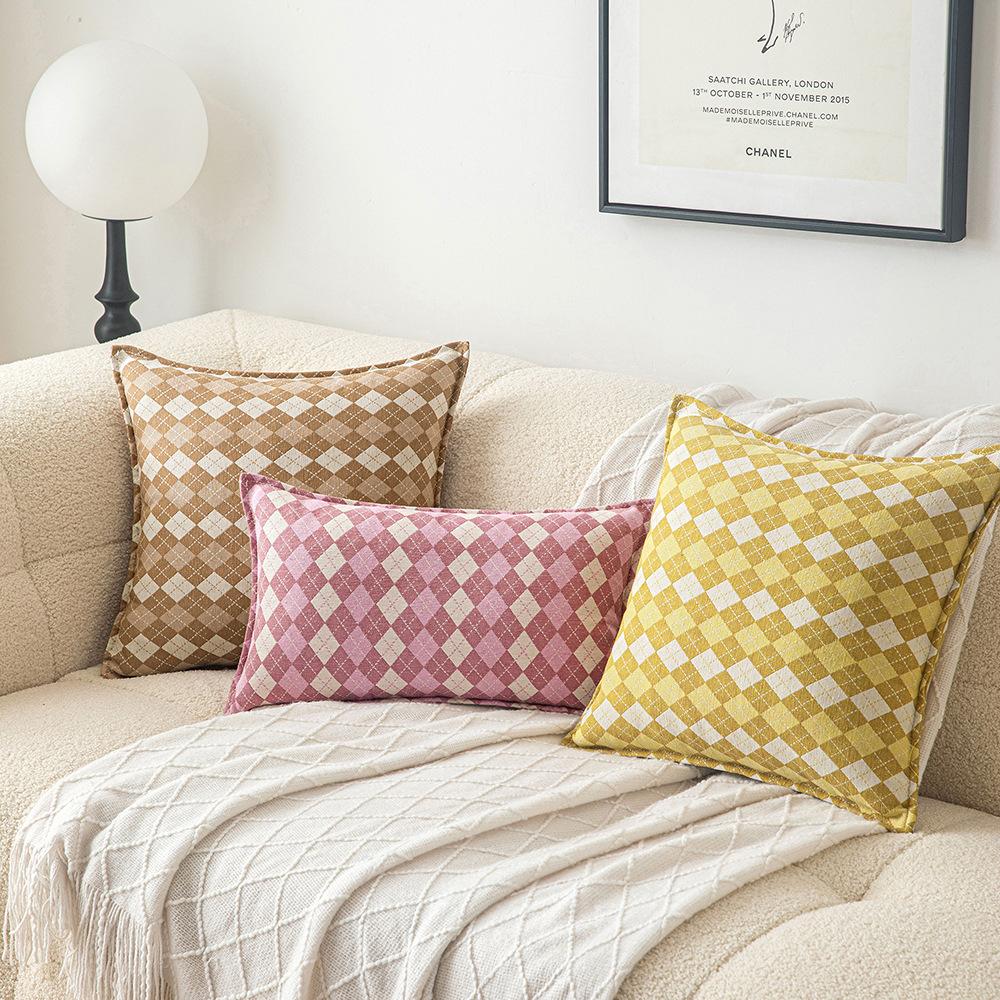 Geometric Plaid Simple Pillow Ins Style Home Sofa Bedside Decoration Cushion Cover Office Sitting Waist Protection Pillow