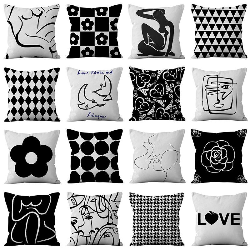 Nordic Ins Style Simple and Light Luxury Lines Black and White Plaid Pillow Case Pillow Lunch Break Pillow Sofa Cushion