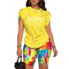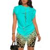 YYFS Moda dame ocazional vară primăvară cu imprimeu cu mâneci scurte cu decolteu O pantaloni pantaloni costume