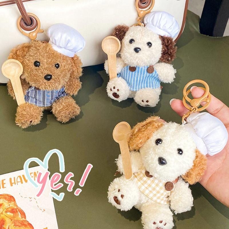 Cățel Chef Drăguț cu Șapcă de Bucătar Șorț Jucărie de Pluș Cățel de Desene Animate Pandantiv Păpușă Umplută Breloc Rucsac Mașină Decor Inel de Chei Cadou Copil
