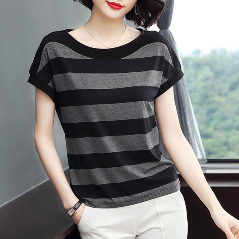 Tricou cu mânecă scurtă de mărime mare Femei Larg cu dungi Mânecă pe jumătate Top