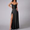 Rochie lungă din satin, fără spate, de vară, pentru femei, cu guler înalt, încrucișat, curea spaghete, rochie lungă de petrecere