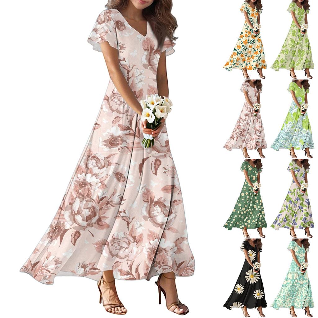 Rochii de vară casual de modă pentru femei, cu imprimeu, cu gât în V, cu mâneci scurte