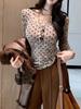 Pure Desire Off-the-shoulder Mesh Polka Dot Sexy T-shirt Long-sleeve Slim Fit Summer Sun Protection Camisole Stylish Top